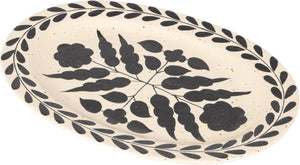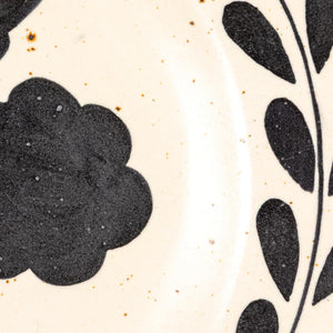 Where quiet beauty meets bold expression. This handmade stoneware platter, finished in a creamy white glaze, is graced with an inky black floral motif that feels both timeless and striking. Each brushstroke carries the artist’s hand, lending a sense of depth and intention. Whether it’s anchoring a candlelit spread or standing alone as a sculptural centerpiece, this piece absolutely serves.